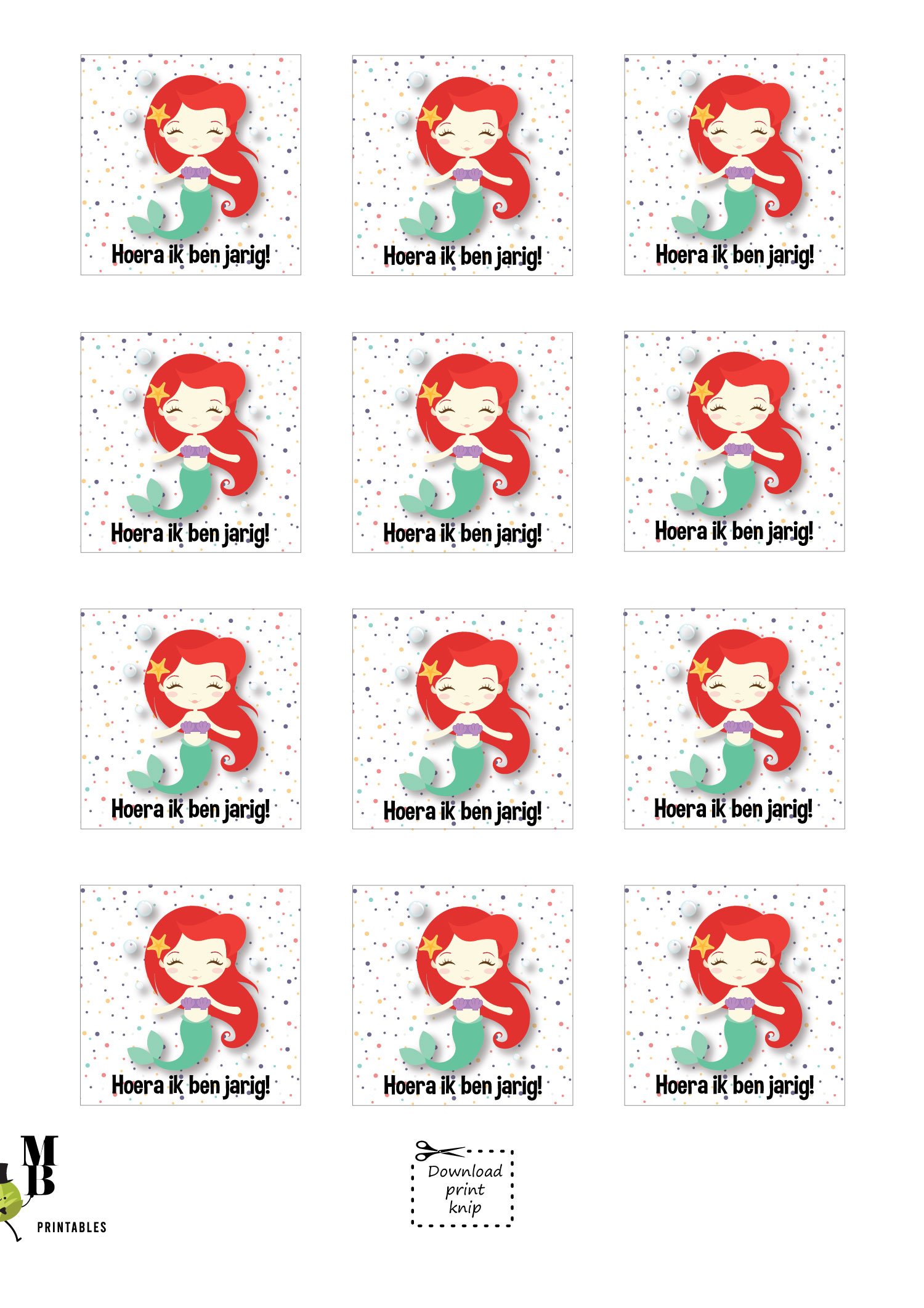 Het Mermaid label is een printable bestand. Je ontvangt een PDF die je zelf thuis of bij een printshop kunt uitprinten. Op de PDF staan 12 labels die 5cm x 5cm zijn.